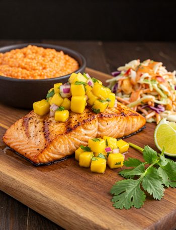 Updated on March 14, 2025March 14, 2025 Leave a Comment on Fiery Salmon Feast: Spicy Tomato Grits, Three-Pepper Slaw & Mango Salsa