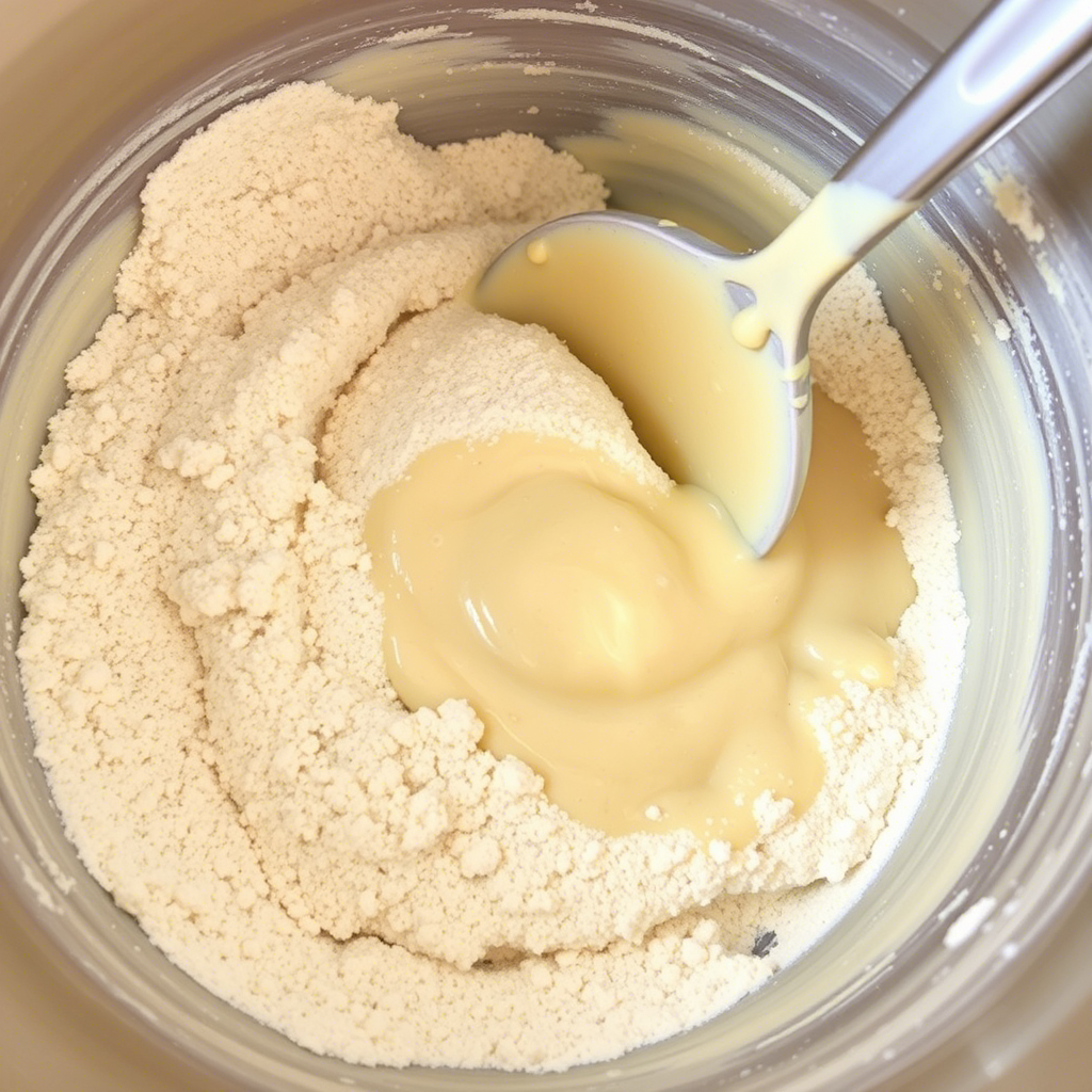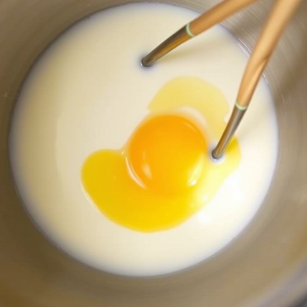 In a separate bowl, whisk the milk, egg, and melted butter until smooth. Avoid overmixing to keep the pancakes tender.