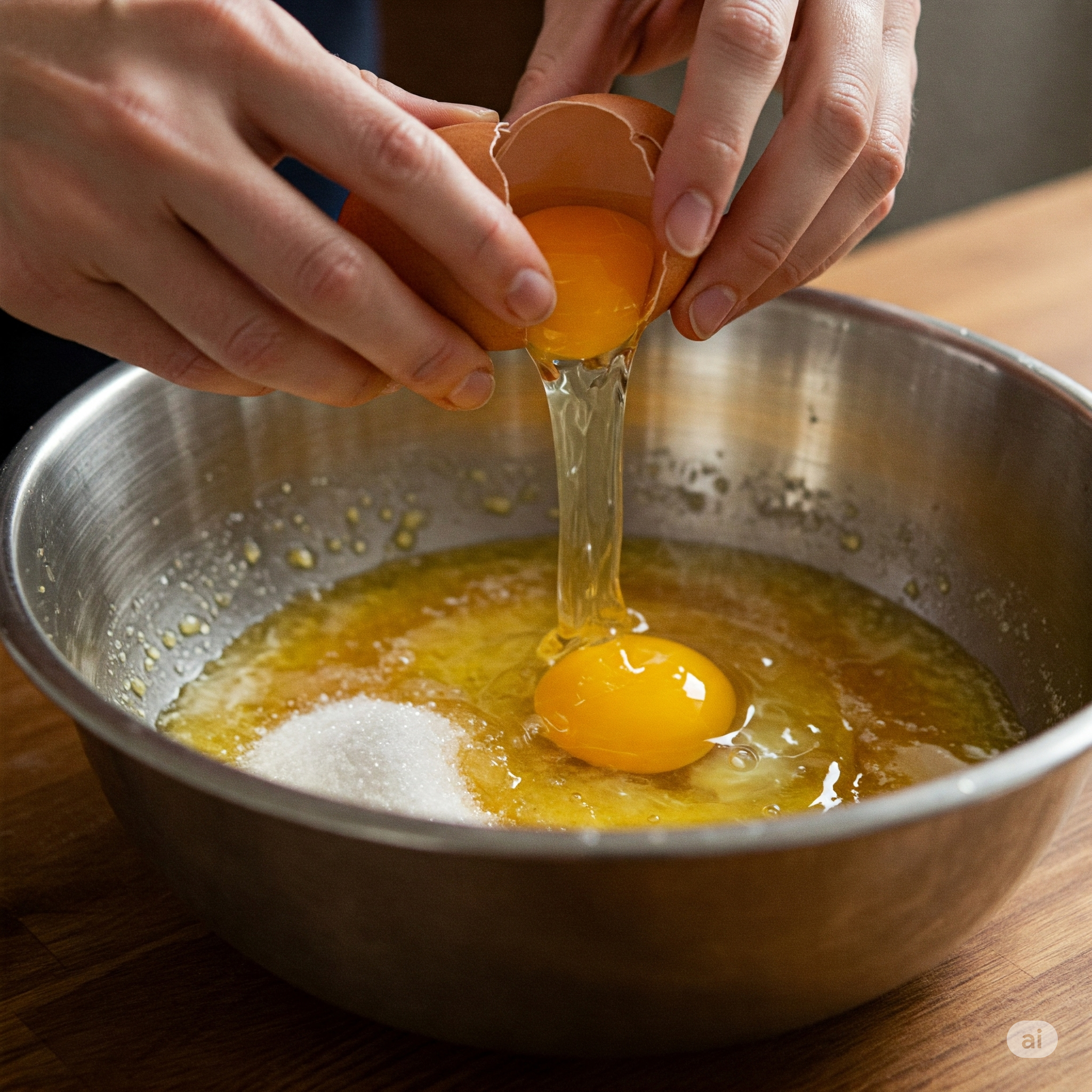 Beat in the eggs one at a time, ensuring each egg is fully incorporated before adding the next.