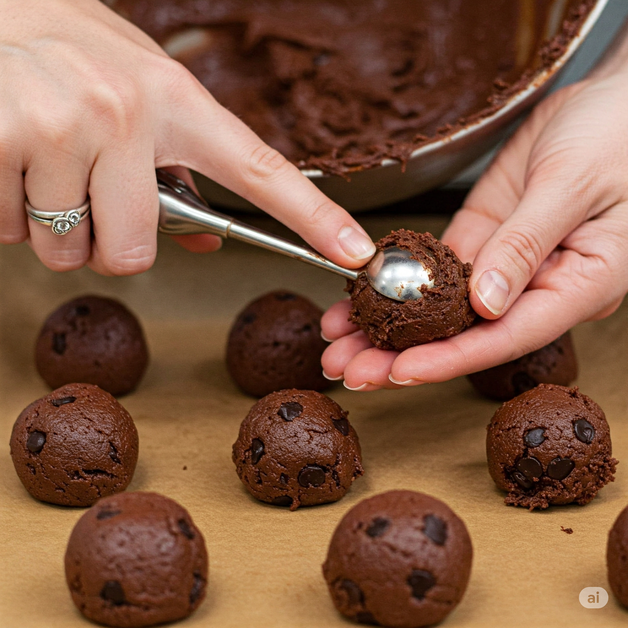 Scoop out tablespoon-sized portions of dough (about 2 tablespoons per cookie) and roll them into balls. Place them on the prepared baking sheet, spacing them about 2 inches apart.