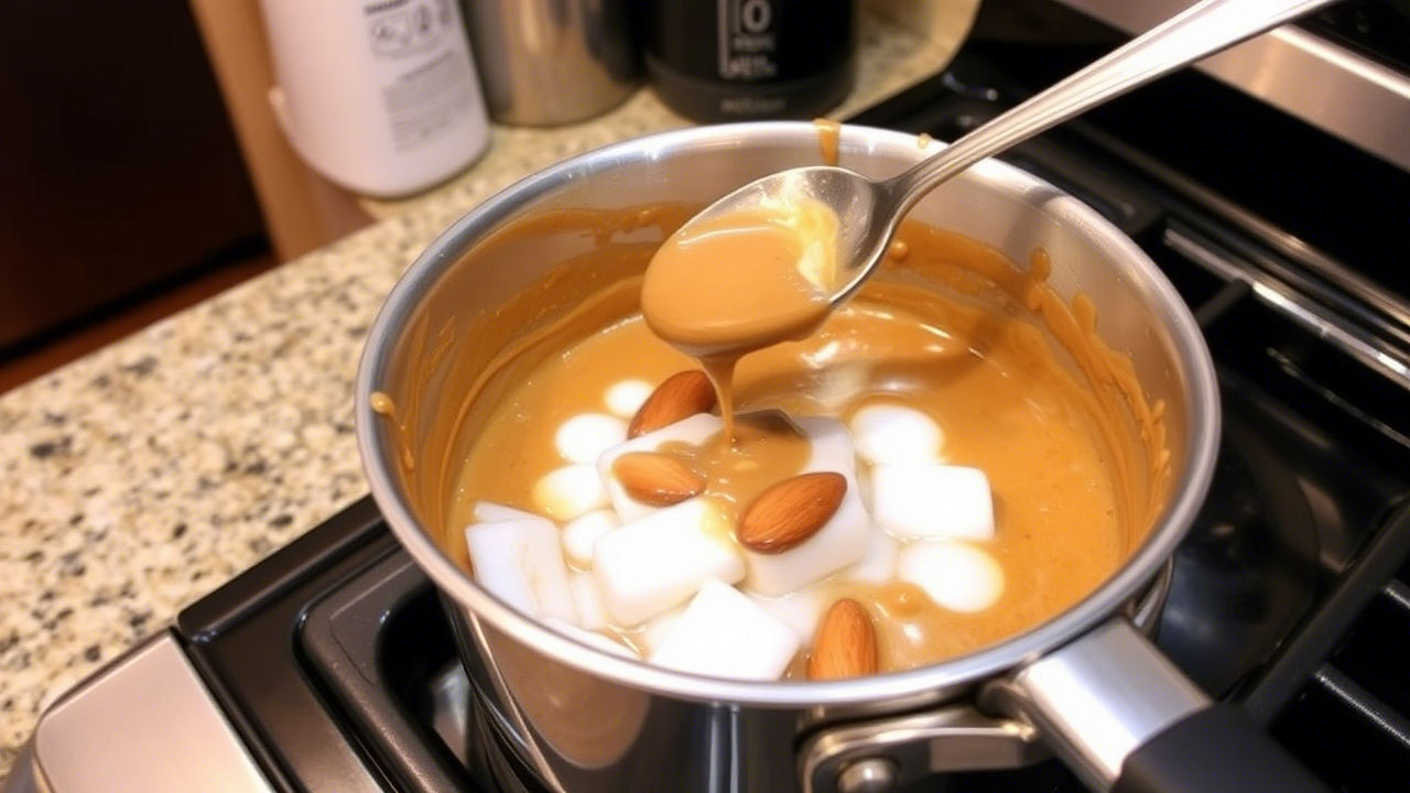 In a small saucepan over low heat, combine the almond butter, maple syrup, and coconut oil. Stir continuously until fully melted and smooth (about 2-3 minutes). Remove from heat and stir in the vanilla extract and sea salt.