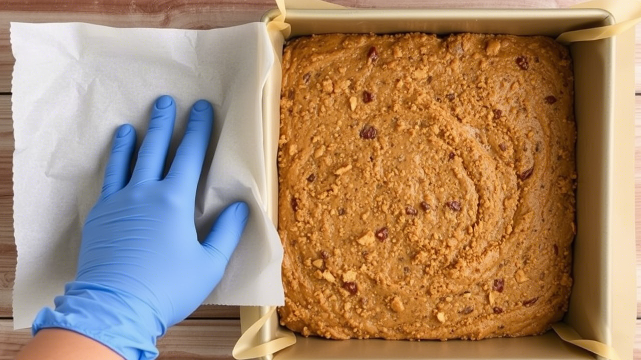 Line an 8x8-inch square baking pan with parchment paper, leaving some overhang on the sides for easy removal.