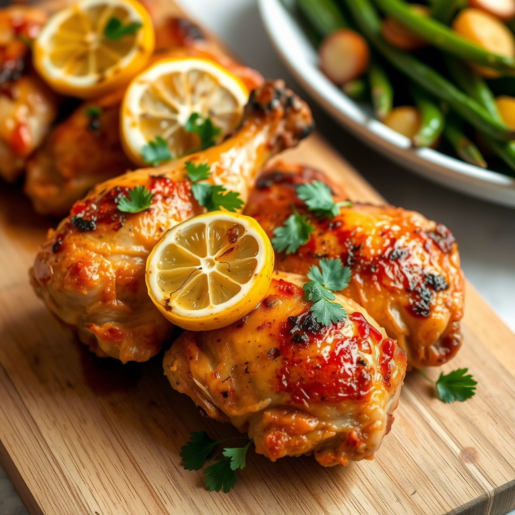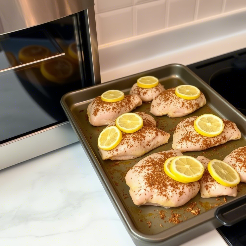 Place a slice or two of lemon on top of each chicken thigh. This adds a burst of citrus flavor and makes the dish look restaurant-worthy.