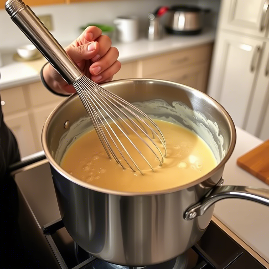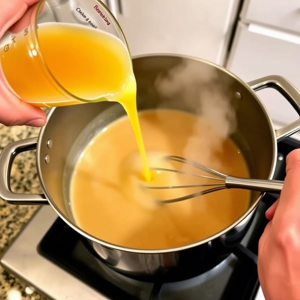 Slowly pour in the chicken broth while whisking constantly to avoid lumps. Continue whisking until the mixture begins to thicken, which usually takes about 5-7 minutes.